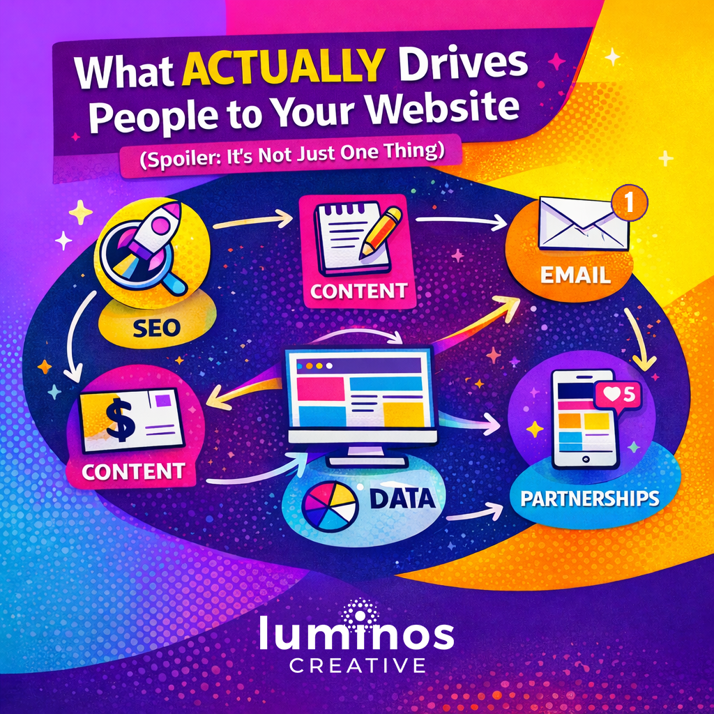 If you’ve ever thought, “If we just did more SEO…” or “Maybe we need to post more on social,” you’re not alone. The truth is, website traffic doesn’t come from one magic tactic.